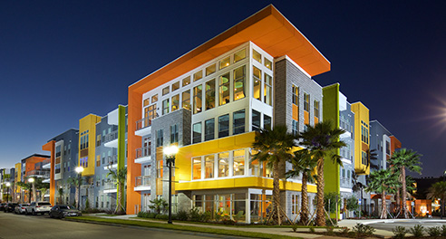 A 310-unit urban-style apartment community, with amenities including a modern pool with dual aqua decks, outdoor living room, regulation-sized bocce court and two-story fitness center.